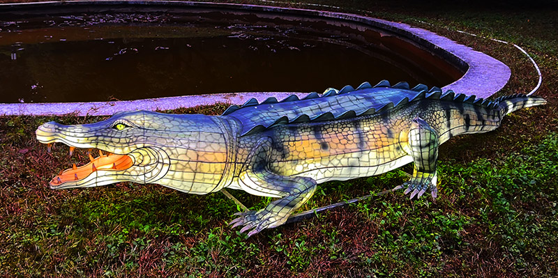 鳄鱼彩灯定制灯组是采用传统自贡彩灯制作工艺,运用写实的手法纯手工制造。对每个彩灯制作环节要求都很高,特别是彩灯制作美工在后期处理上是要求极高的。