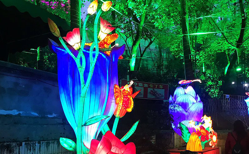 小型单体彩灯制作案例——《蝴蝶凝香》彩灯灯组中整体钢架结构,彩灯灯组整体采用传统丝扎立体造型自贡彩灯制作工艺,部分分色裱糊。美工彩绘处理,加点光源装饰处理。