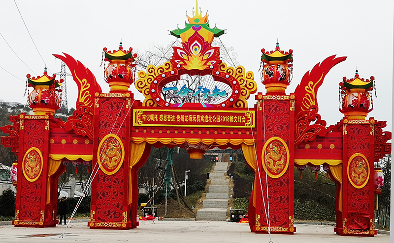 贵州龙场玩易窝2018修文灯会,自贡盛大彩灯为了更好体现出此次灯会的展出要求与目的,根据当地实际及情况和展出需求,将灯会展出分为五个板块,突出主题。