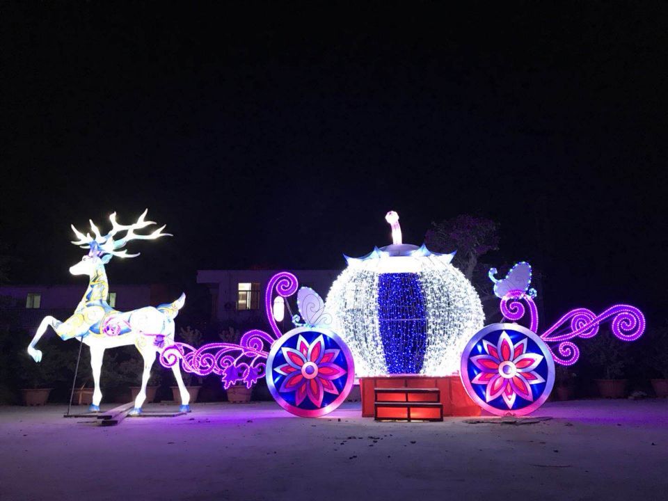 《喜迎中秋》中秋佳节,家人团聚,吃月饼赏月,仙女翩然,此花灯彩灯灯组采用民间传说嫦娥奔月,使赏灯人沉醉其中。
