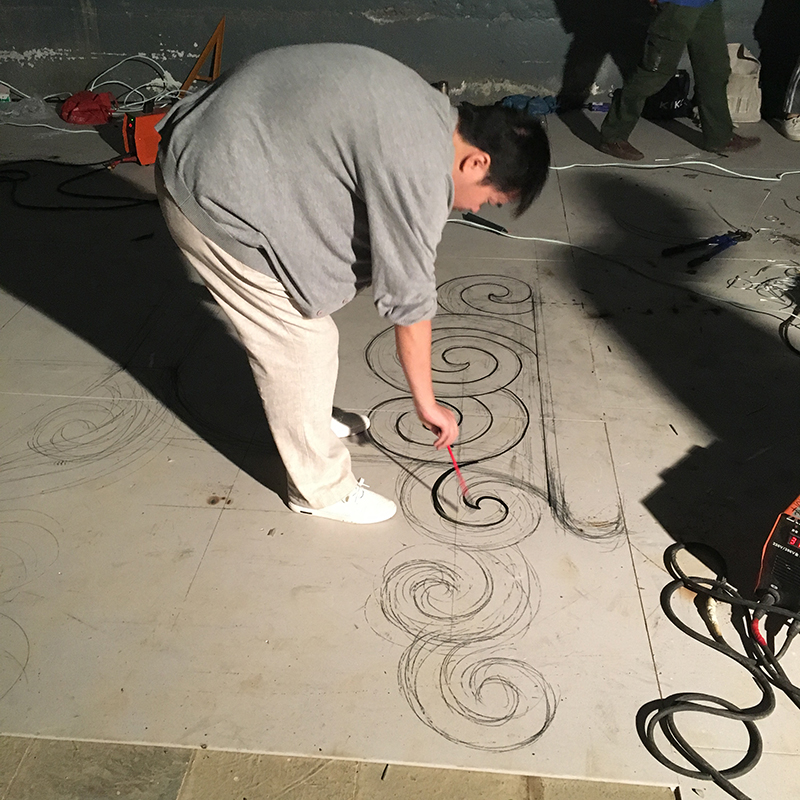 (美工放样,随着科技进步放样也越来越多样化,喷绘放样现在也是常见的一种放样方式)